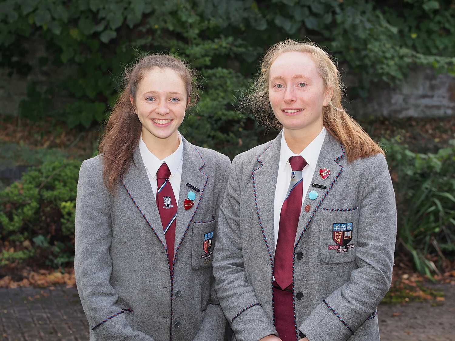 Caitlyin Harvey and Odila Goldsworthy co captains of the 1stX1 are delighted that VCB have qualified for the ¼ Final of the Ulster Hockey Super League.